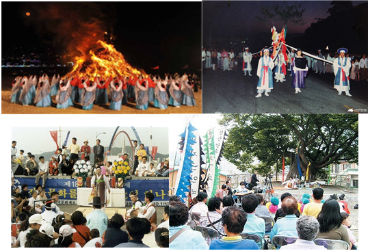 국가적인 의식의 행사, 기원의 굿 축제 형태의 행사, 백성이 어울려 노는 대동놀이의 형태로 형성되었고 그 예로 축제와 달집 태우기, 줄다리기, 단오제, 별신굿, 당산제 등의 축제가 진행되었다.