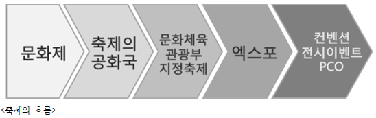 대한민국을 주도적으로 이끄는 것은 지자체의 축제, 스포츠, 기업과 단체의 전시 컨벤션과 포럼, 여가 레포츠 휴양 시설, 기업의 마케팅이 대한민국의 이벤트를 이끌어가는 장르라고 본다.